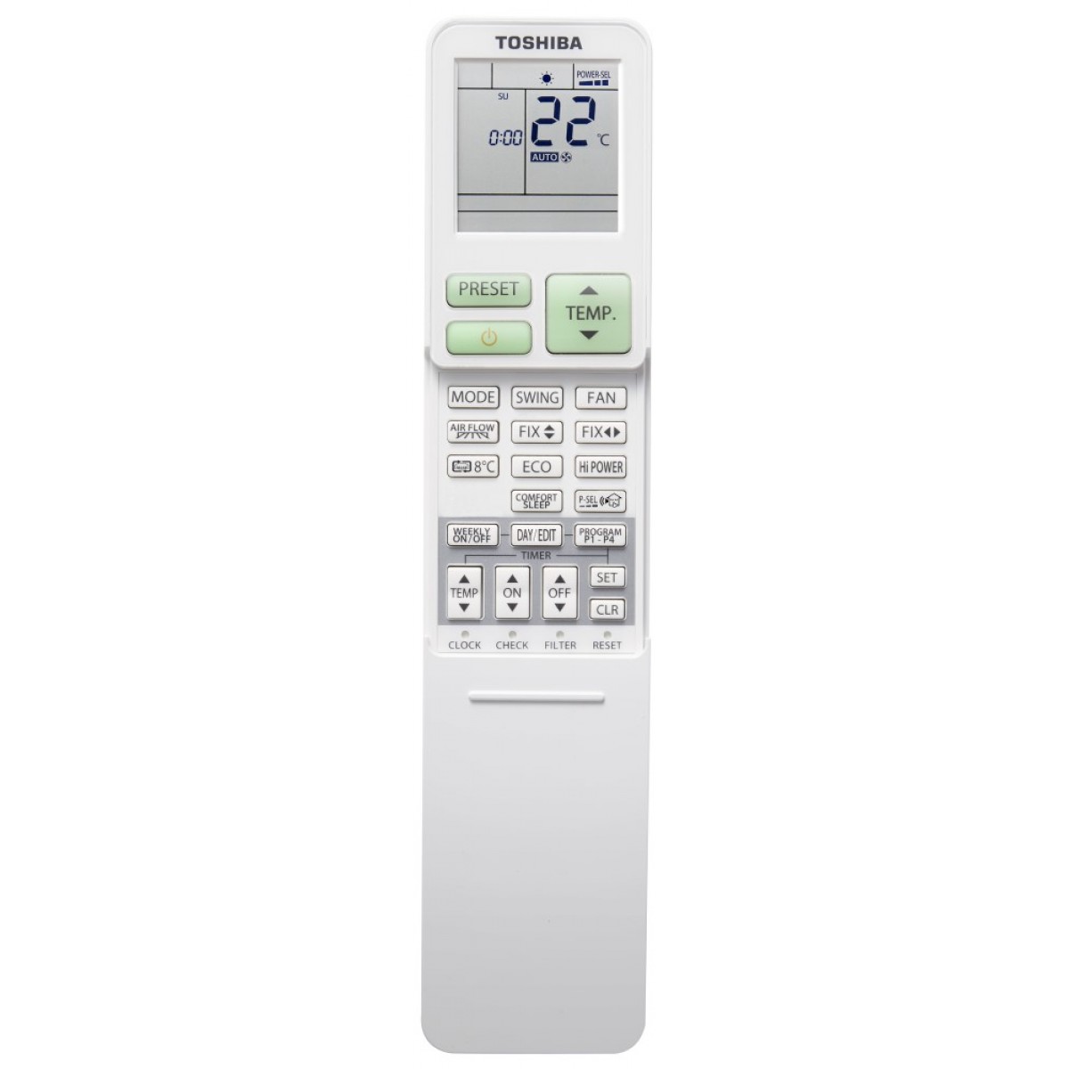 Комфорт с едно натискане: Предварително програмираните настройки, проучени от Toshiba, предлагат точната комбинация от комфорт и икономия на енергия със само едно натискане на бутона.