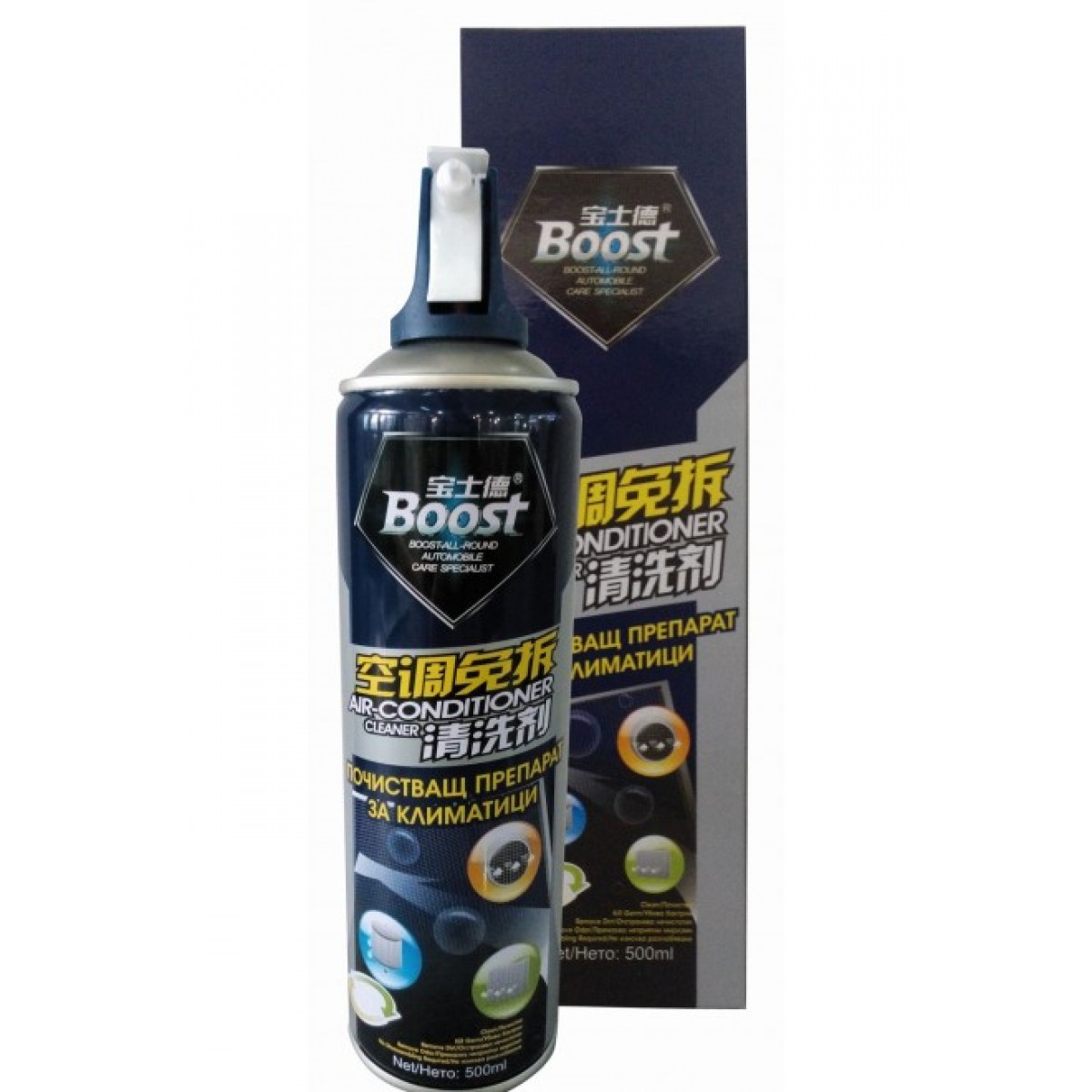 Професионален препарат за почистване на хладилни, климатични и автоклиматични топлообменници. Спреят BOOST премахва всички прахови, маслени и бактериални замърсявания с помощта на мощната си почистваща формула. Препарата се разпръсква под формата на пяна, като удължителят му позволява достигане до труднодостъпни места. При самото му отмиване препарата преминава и през дренажната тава и маркучи, като по този начин почиства и тях.