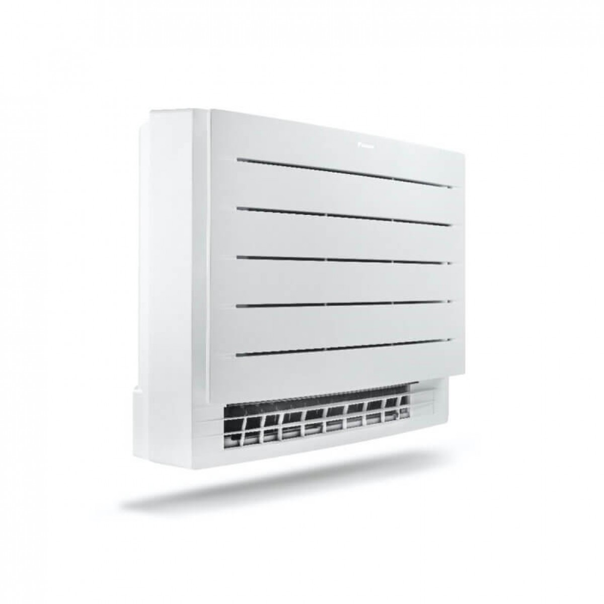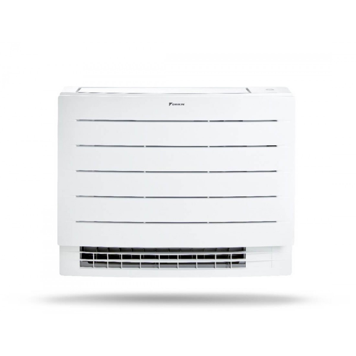 Подов климатик Daikin FVXM35A PERFERA с мощност 12 000 BTU подходящ за охлаждане на помещения до 31 кв.м. / 80 куб.м. и за отопление до 27 кв. м. / 70 куб.м. FVXM35А е нов модел 2020 година подов климатик от Daikin с впечатляващ съвременен дизайн. Двоен въздушен поток за по-добро разпределение на въздуха с три уникални функции за отопление: ускорено отопление, отопляне на пода, допълнително отопление. За качеството на въздуха в помещенията се грижи Flash streamer. Изключително тих: само 19 dBA при работа в безшумен режим.